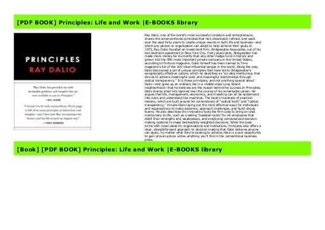 Ray dalio, among the world's most prosperous investors and investors, stocks the unconventional principles which he has developed, refined, and used within the past twenty five years to produce unique benefits in both business and life. Article in his book principles: Life and work | free pdf download bit.ly/2d7gxjp. Life and work by ray dalio link in the last page. Get your kindle here, or download a free kindle he also seems to dabble in psychology for being a more effective/principled person.