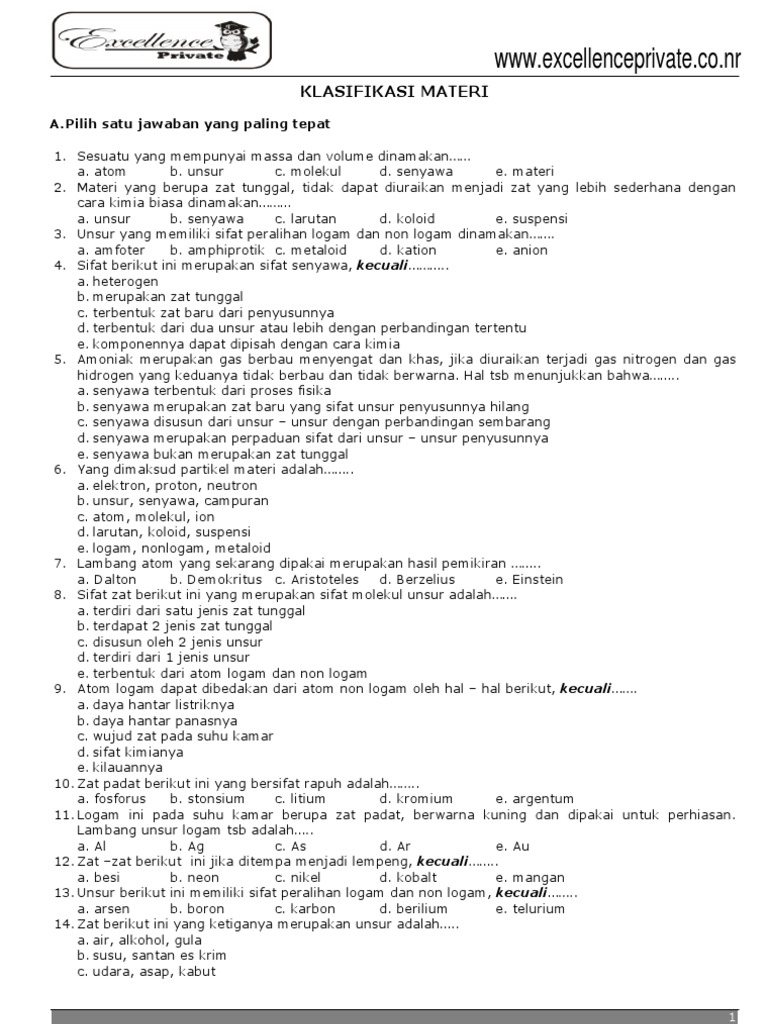 Soal Ulangan Tentang Klasifikasi Materi Klasifikasi Materi