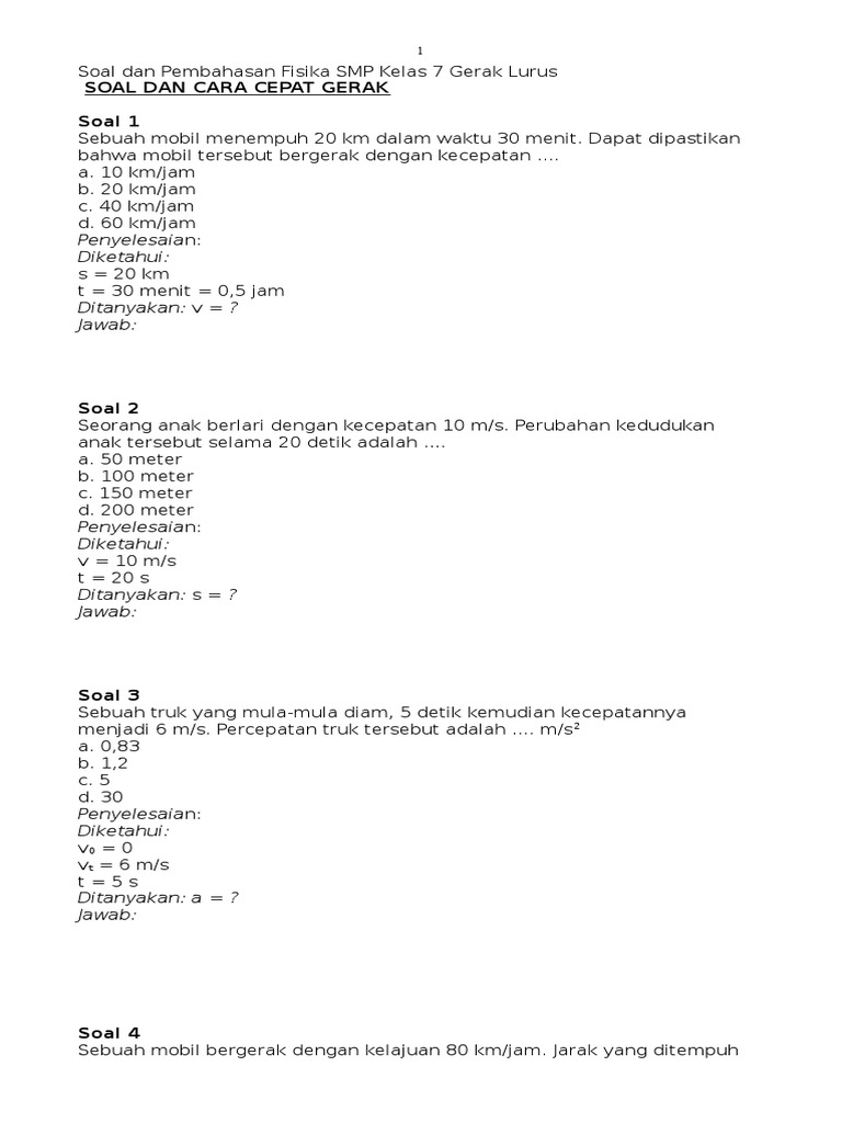 Contoh soal gerak lurus ini terdiri dari 5 soal pilihan ganda dan 5 soal essay. Download modul untuk bimbel sd dan smp kelas 4 matematika ips kelas 4 ipa pkn indo smp kelas 8 sem 2. Soal glb dan glbb kelas 10 diah kusumastuti.