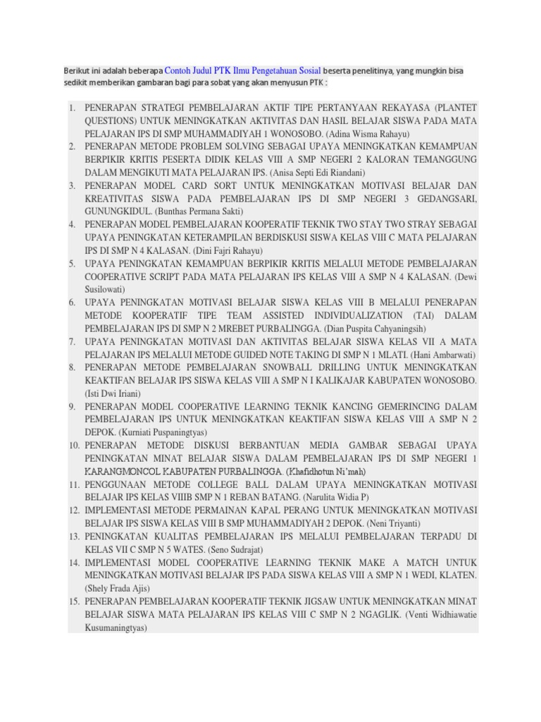 Download Contoh Judul Dan Laporan Ptk Ips Smp Mts Informasiguru Com