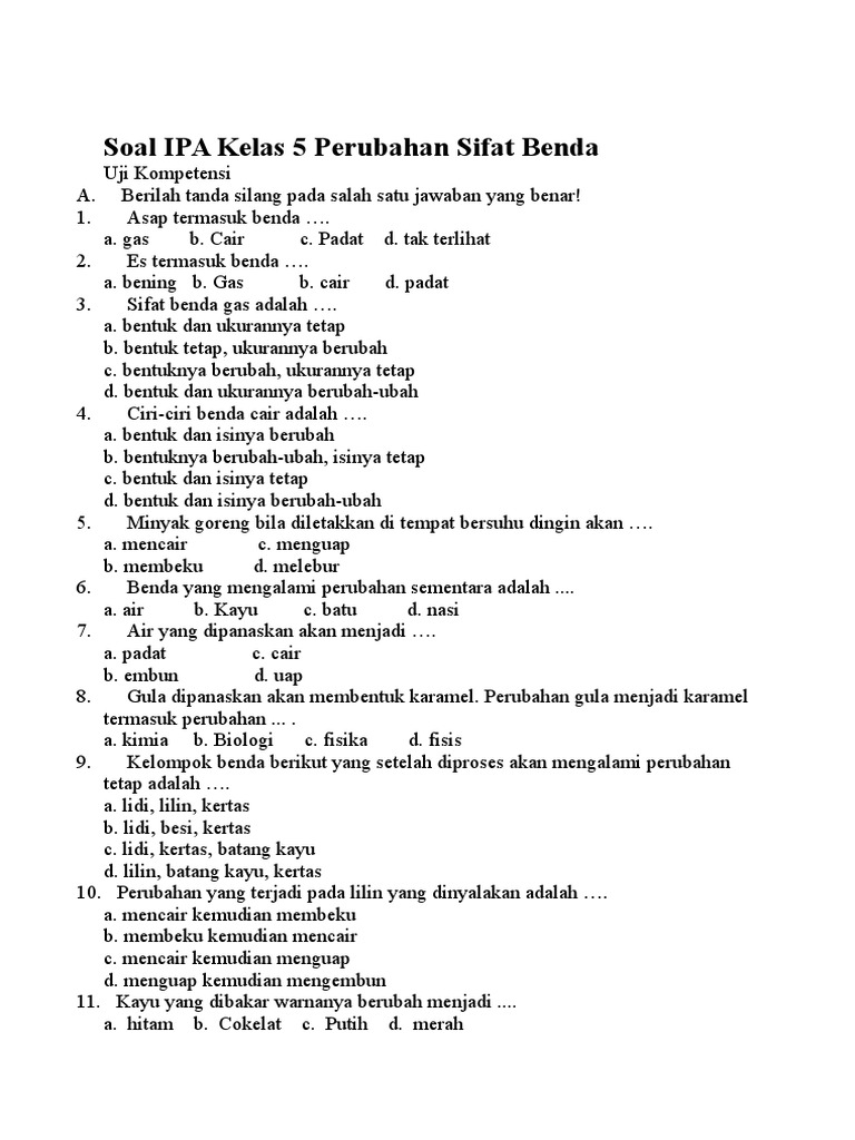 Soal Ipa Kelas 5 Perubahan Sifat Benda
