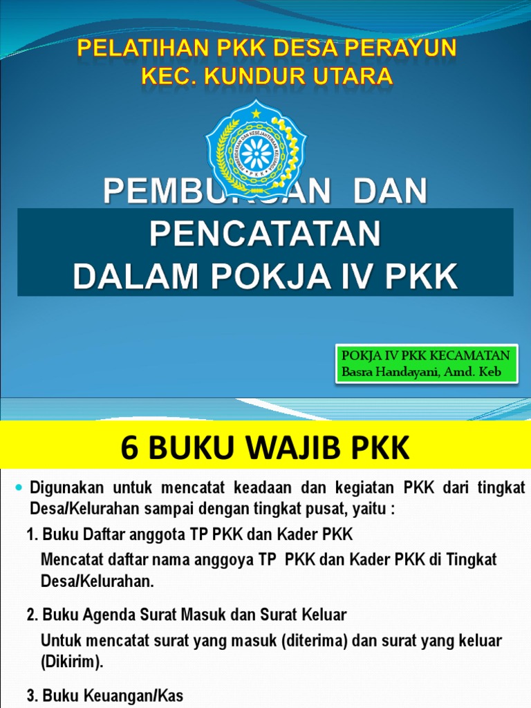 Pelaksanaan PKK ini wajib. Enam buku wajib pkk. Format buku kas pkk.