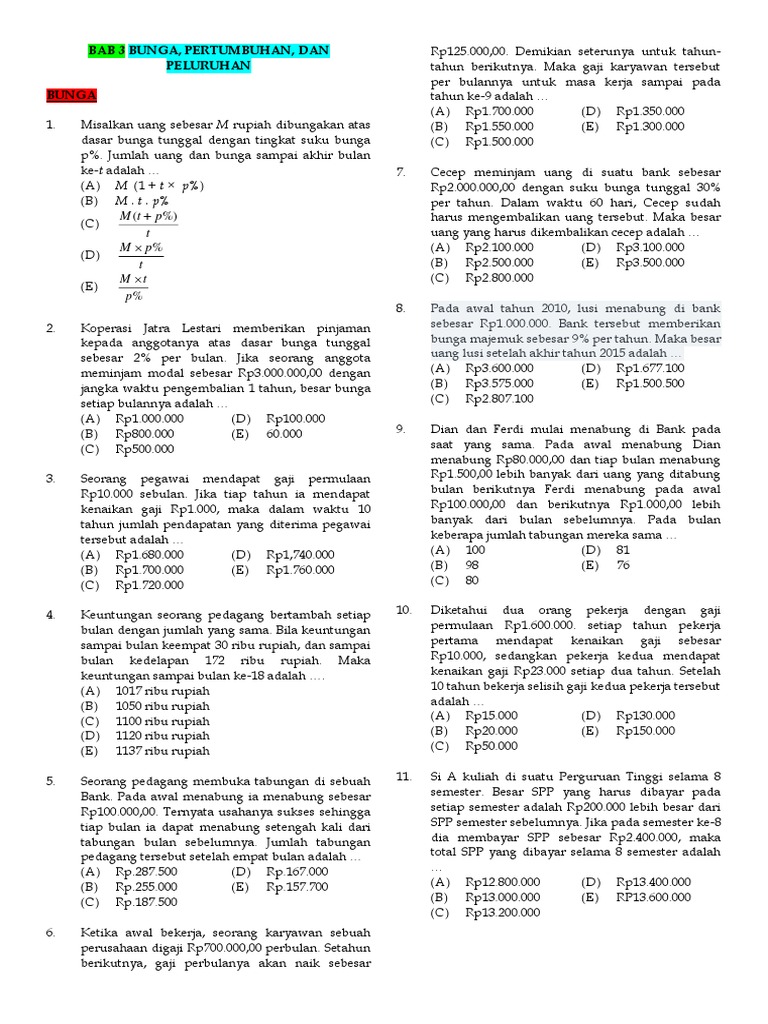 Soal Soal Bunga Pertumbuhan Dan Peluruhan Pdfcoffee Com