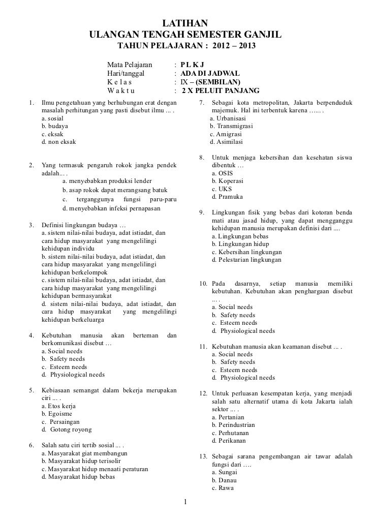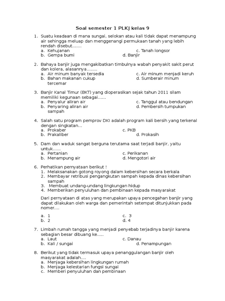 Latihan soal ulangan akhir semester genap plkj kelas ix Pilhlah Jawaban dibawah ini yang kamu anggap benar 1Khusus WNA Cina selain melampirkan surat Fiskal. Suatu keadaan di mana sungai. Soal semester 1 PLKJ kelas 9.
