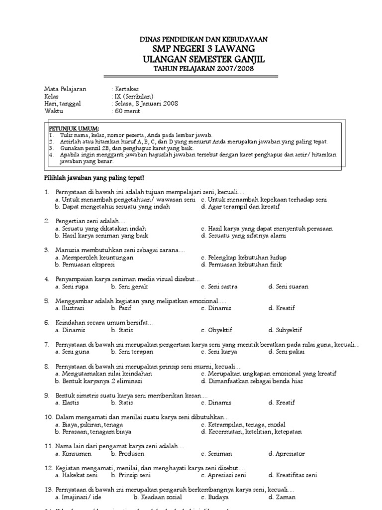 0708 Uas Ganjil Seni Budaya Kelas 9